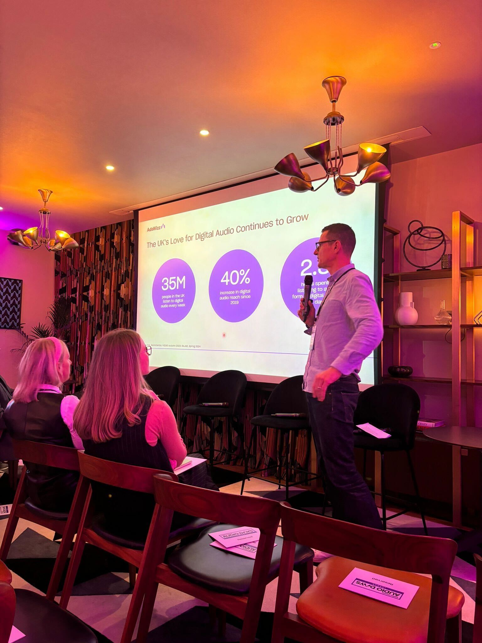 The day began with a welcome from Ollie Chadwick, who outlined AdsWizz’s evolution and its role in shaping the digital audio landscape. He highlighted the steady rise of digital audio adoption in the UK and emphasized the growing importance of programmatic audio, noting its ability to reach audiences more effectively and cost-efficiently compared to traditional media.